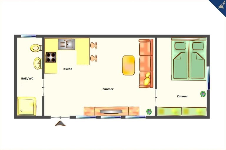 Zusätzlich besitzt das Wohnzimmer eine Sitzgruppe, welche als Aufbettungsmöglichkeit für eine dritte / vierte Person genutzt werden kann.